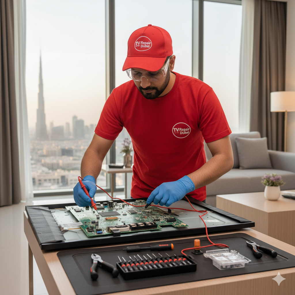 For your convenience, we offer home service across Dubai. Our technician will visit your home, check the issue, and repair your TV safely on-site. This saves you the trouble of transporting your TV to a workshop.